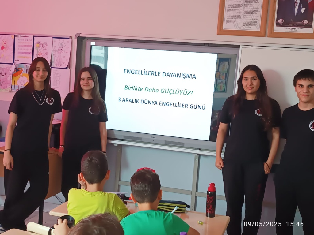 Okulumuz engellilerle dayanışma Kulübü öğrencileri 1200 Evler İlkokulu öğrencilerine "Engelli Bireylere Nasıl Davranmalıyız?" konulu sosyal sorumluluk projesini gerçekleştirdiler .